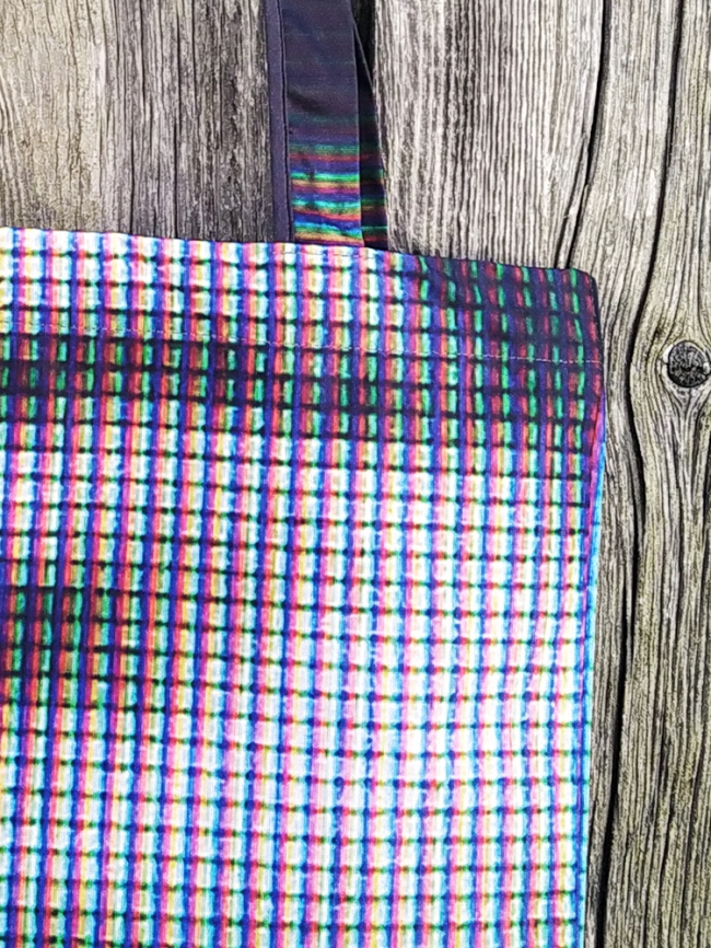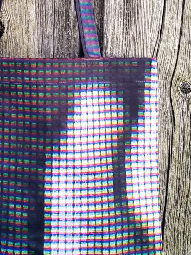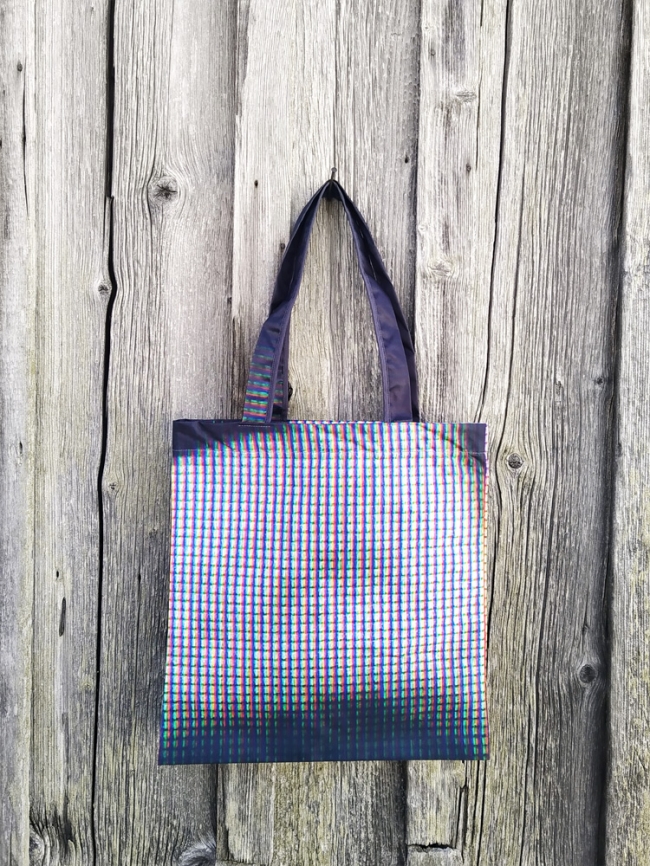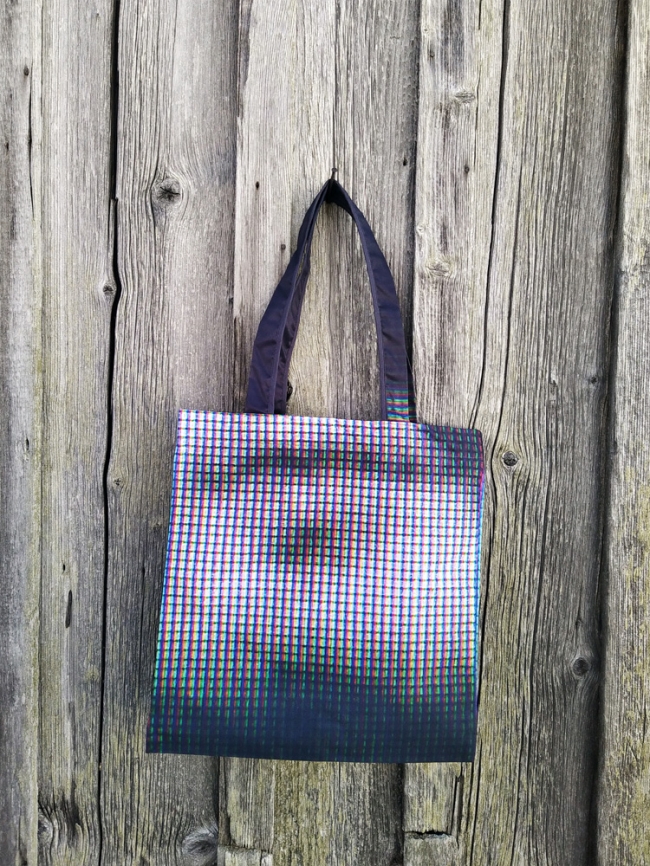 These tote bags are upcycled from large-format fabrics of ME. Here Now series exhibited at the Swiss Camera Museum among others.  Because they are cut from these fabrics, every bag is unique.